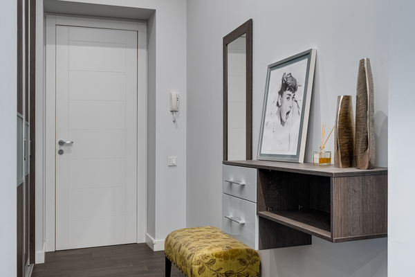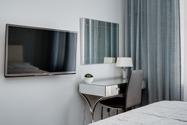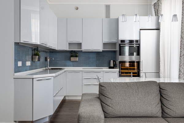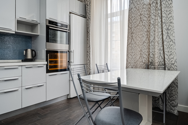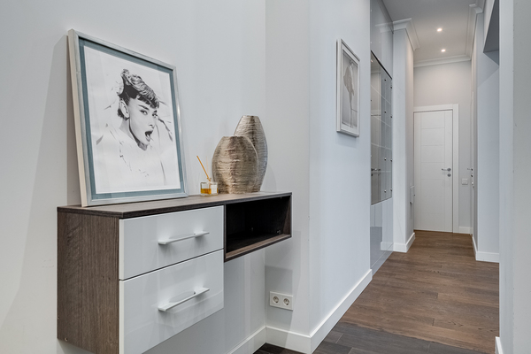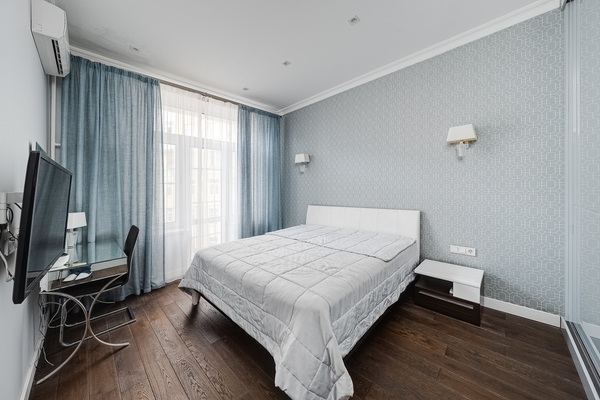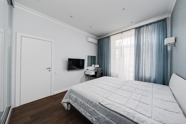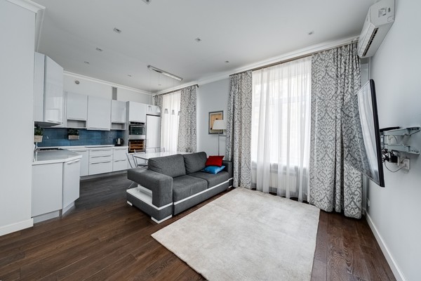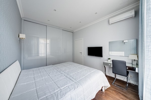 В квартире 2 кондиционера, 2 телевизора, холодильник, посудомоечная и стиральная машины, индукционная плита, встроенный винный шкаф, регулировка яркости света. Предусмотрено много встроенных систем хранения: лаковый шкаф во всю стену в спальне, шкаф в прихожей и книжный шкаф в гостиной, большое количество ящиков на кухне. Широкая двуспальная кровать с ортопедическим матрасом в спальне, удобный раскладывающийся диван в гостиной. Маленький уютный балкон.