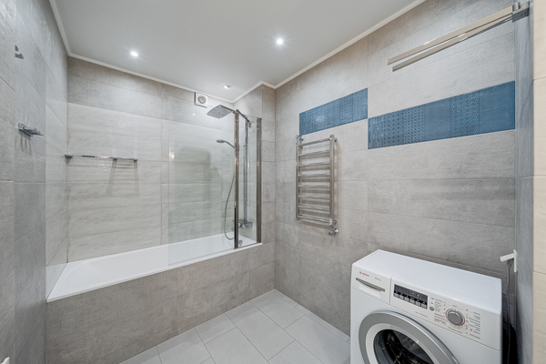 Планировка продумана до мелочей: итальянская лаковая кухня с каменной столешницей совмещена с гостиной, раздельные санузел и просторная ванная комната с фирменной сантехникой Villeroy & Boch, гигиеническим душем, водонагревателем, испанской плиткой, подогревом полов. Окна выходят во двор, поэтому в квартире всегда тихо и светло. Хорошая звуко- и теплоизоляция.